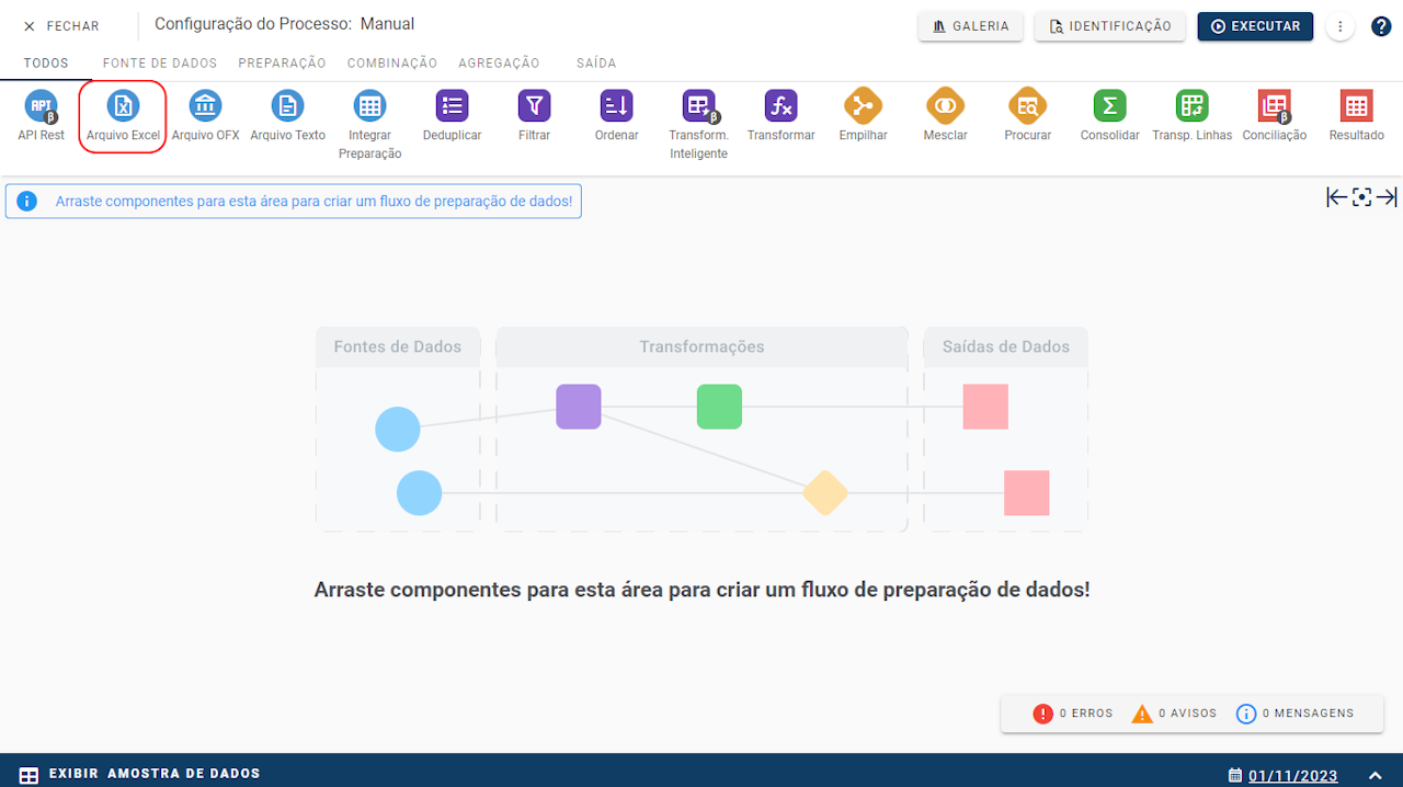 The Excel File component can be used to import a file (spreadsheet) with the extension XLSX, XLS and XLSB to start a data preparation workflow, using the data in this file.