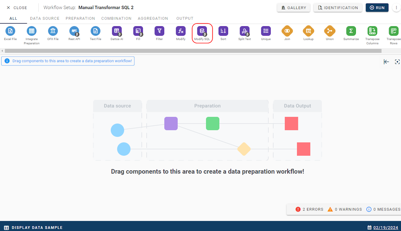 Modify SQL is located in the Preparation category of the toolbar.