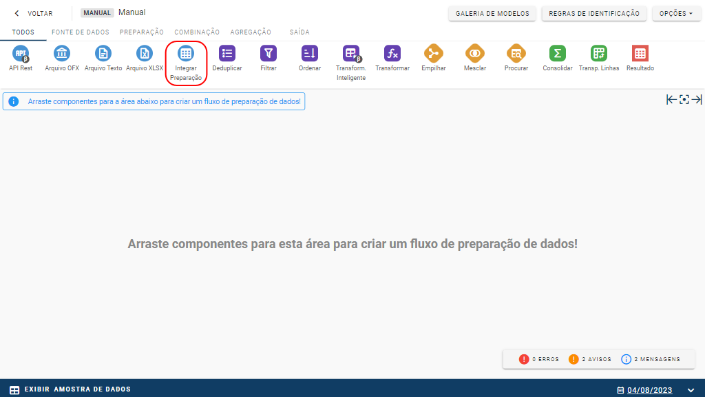 O Integrar Processo está localizado na categoria Fonte de Dados da barra de ferramentas.