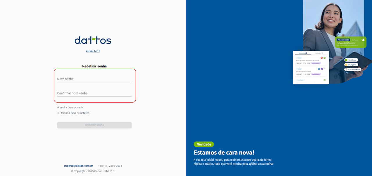 Na página "Redefinição de Senha":
