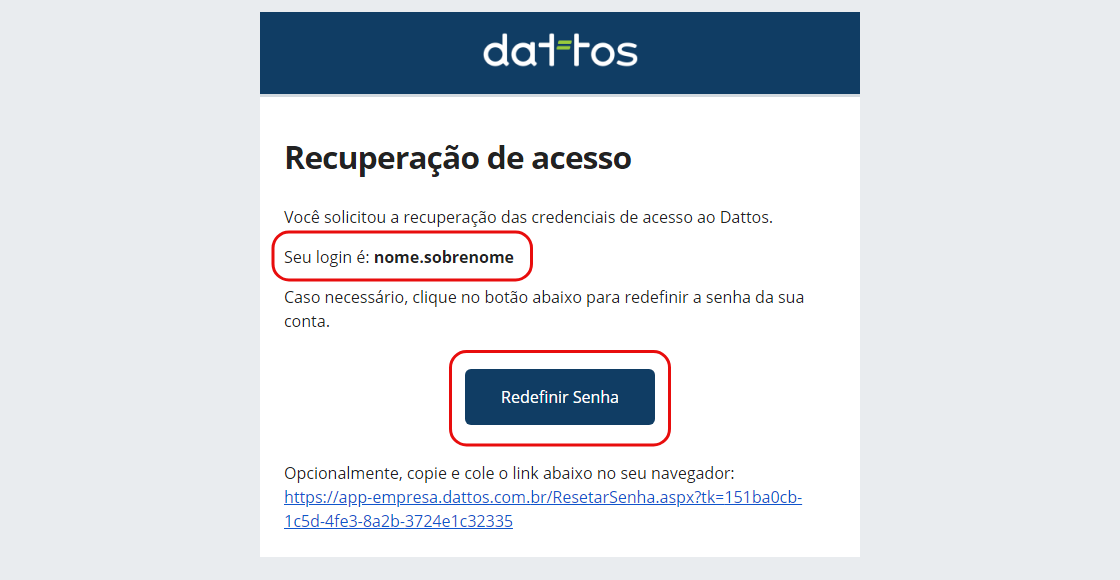 Você receberá um e-mail em sua caixa de entrada com o seu login e demais instruções de recuperação de acesso. Caso deseje continuar o processo para criar uma nova senha clique no botão "Redefinir Senha".